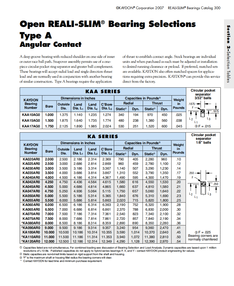 美國KAYDON薄壁軸承KA020AR0 KA025AR0 KA030AR0尺寸參數